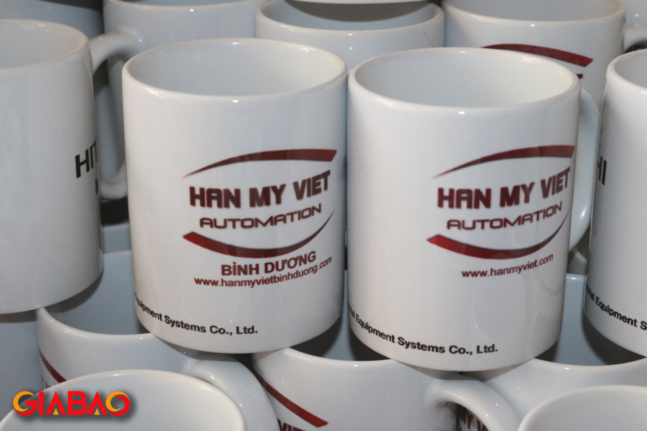 Ly sứ trắng in hình được ưa chuộng tại công ty Gia Bảo